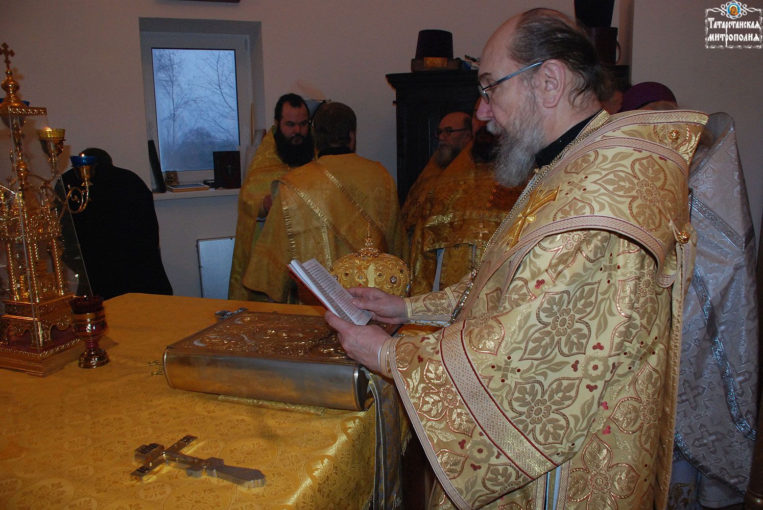 Здесь Его Высокопреосвященство совершил освящение новопостроенного храма и возглавил в нем служение первой Божественной литургии архиерейским чином. Владыке сослужили представители духовенства Чистопольской епархии.