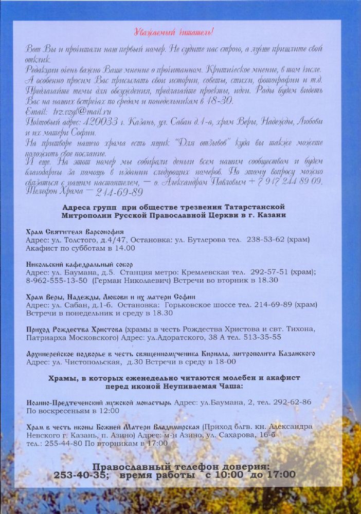 В феврале по благословению главы Татарстанской митрополии митрополита Казанского и Татарстанского Анастасия вышло в свет первое издание журнала общества «Трезвение» при храме святых мучениц Веры, Надежды, Любови и матери их Софии «Трезвый Взгляд».