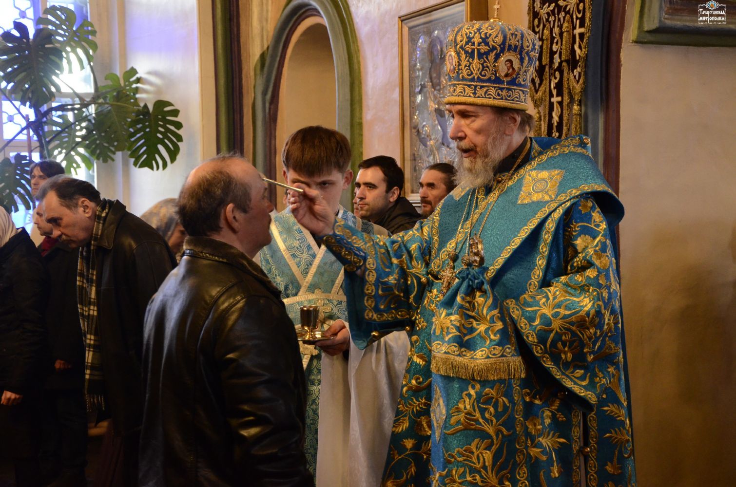 Утром в сам день праздника глава Татарстанской митрополии в сослужении настоятелей городских храмом, монастырей и сонма священнослужителей Казани возглавил престольные торжества в главном храме столицы Республики - Благовещенском соборе Казанского кремля.