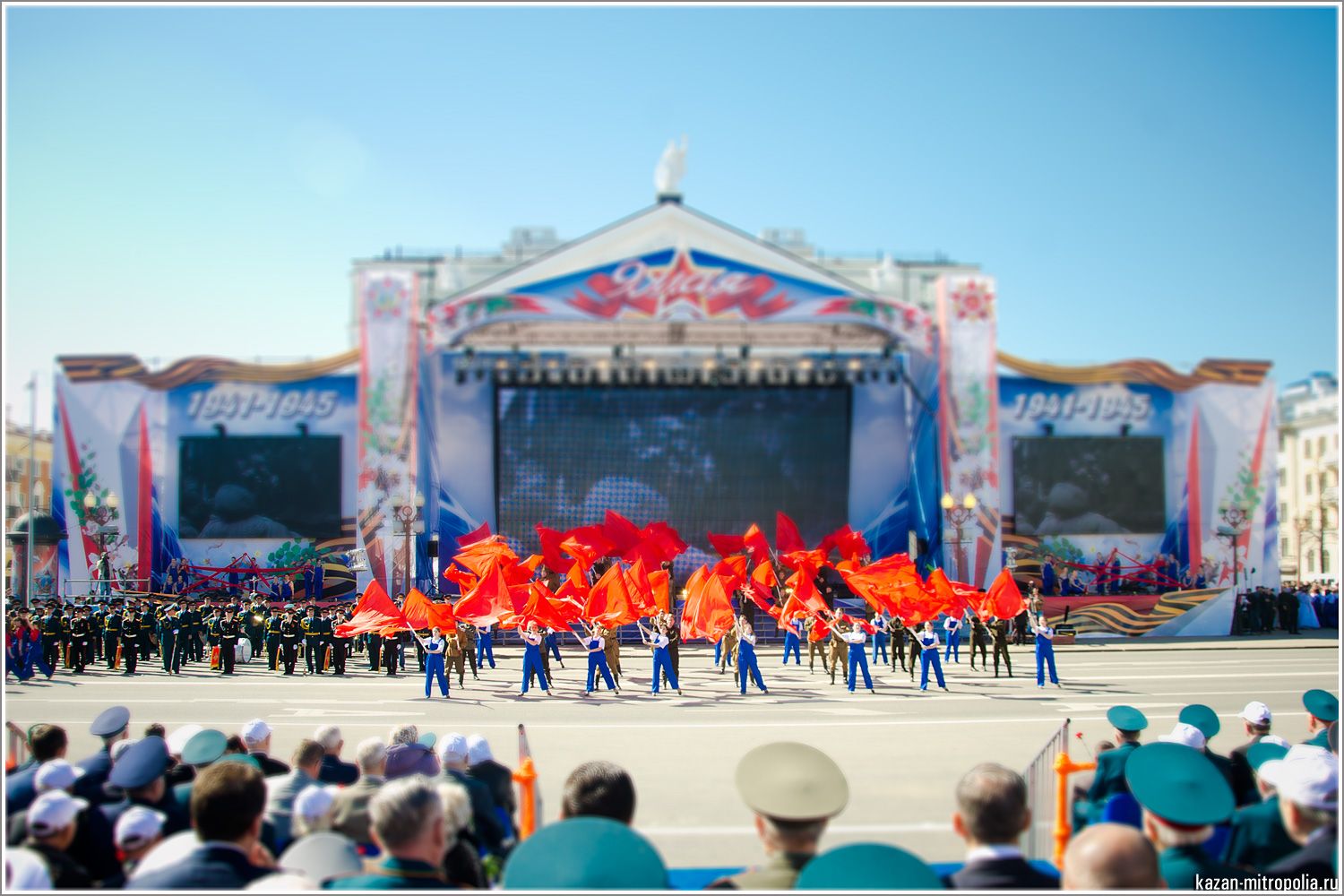 В начале торжества зрителям были продемонстрированы основные эпизоды Великой Отечественной войны. Пролог был представлен с использованием татарских и русских национальных песней и танцев, а завершился запуском в небо воздушных шаров красного цвета.