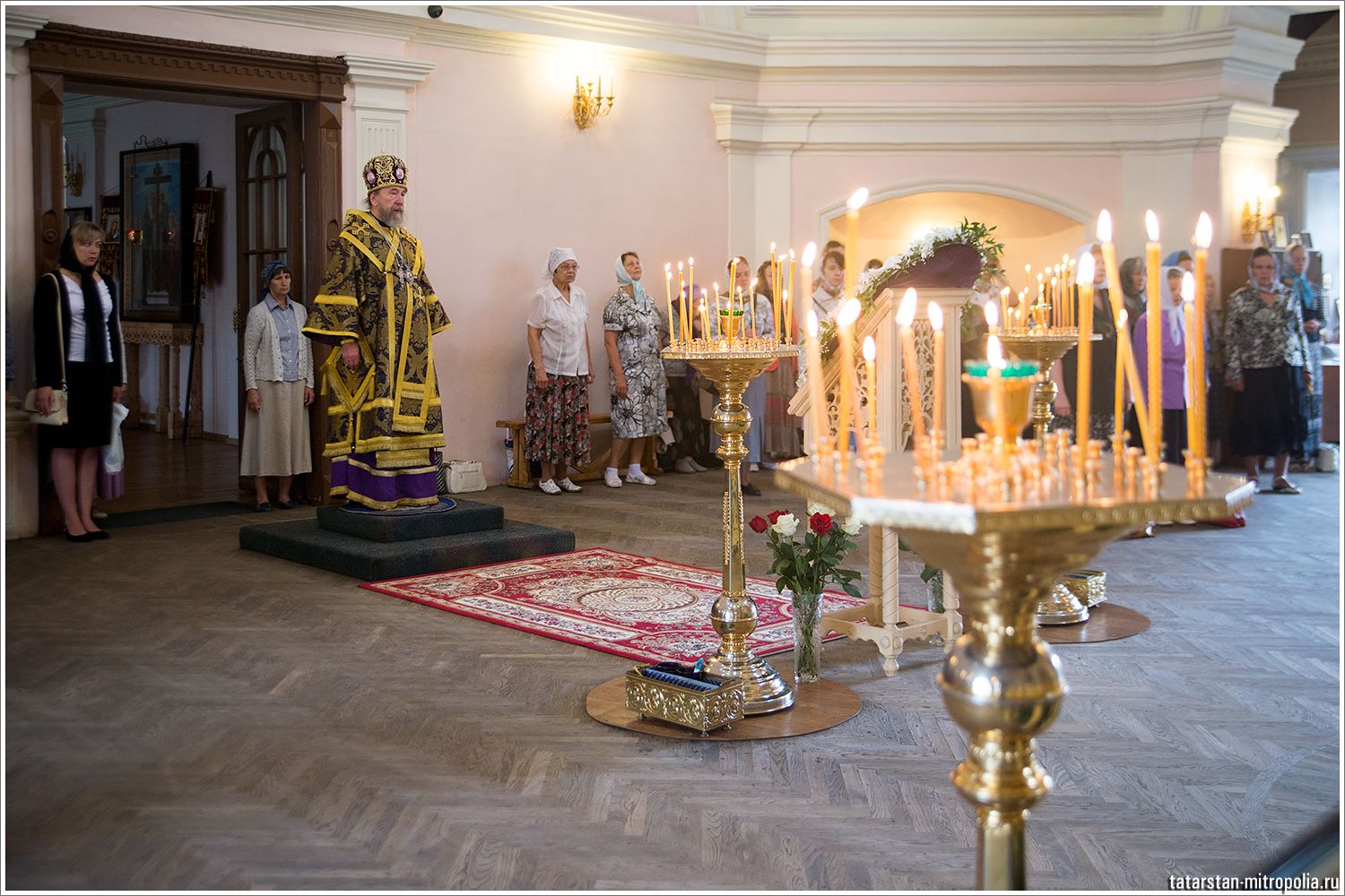 Чин выноса Креста на утрене в Петропавловском кафедральном соборе совершил митрополит Казанский и Татарстанский Анастасий. В день праздника глава митрополии возглавил Божественную литургию в Крестовоздвиженском соборе Казанско-Богородицкого монастыря. Архипастырю сослужили исполняющий обязанности наместника обители иеромонах Марк (Веленский), секретарь Архиерейского совета Татарстанской митрополии иеромонах Филарет (Кузьмин) и братия монастыря в священном сане.