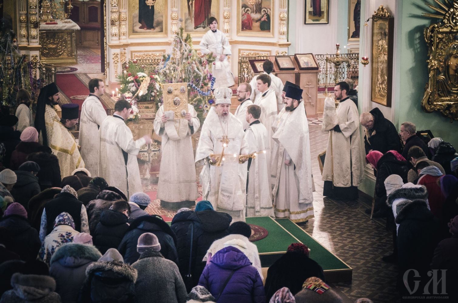 6 января, в день Рождественского сочельника, митрополит Симбирский и Новоспасский Анастасий совершил вечерню и Литургию св. Василия Великого в Воскресенско-Германовском соборе города Симбирска. Перед Литургией владыка молился за Царскими часами в Германовском храме, а накануне вечером – за уставным богослужением в Спасо-Вознесенском кафедральном соборе.